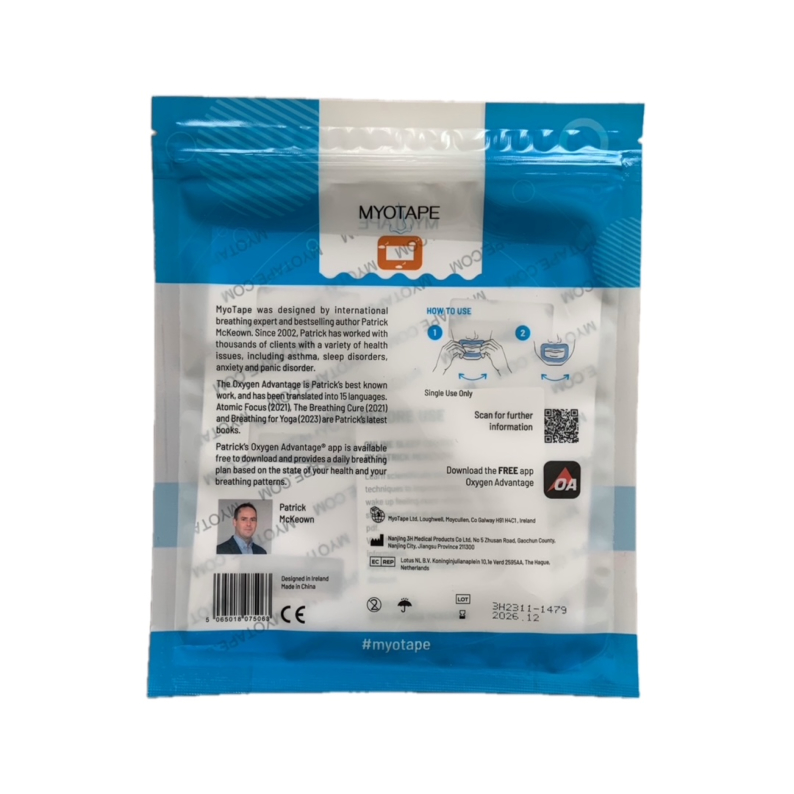 MyoTape fördert die natürliche Nasenatmung – im Schlaf, beim Sport oder im Alltag. Anders als herkömmliche Mundpflaster verschließt es den Mund nicht vollständig. Das Tape wird sanft rund um die Lippen angebracht und unterstützt dabei, den Mund locker geschlossen zu halten. Ideal bei Schnarchen, Mundatmung, während der CPAP-Therapie oder bei schlafbedingter Müdigkeit.