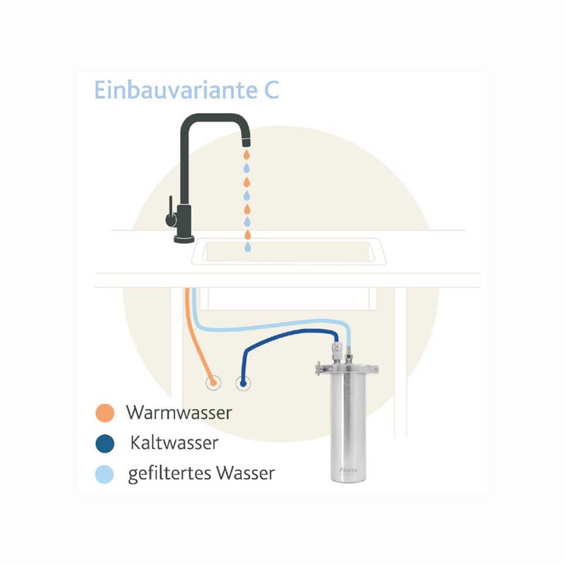 Bei diesem Wasserfiltersystem hat man die Wahl zwischen 3 verschiedenen Einbauvarianten, welche unter „Einbauvarianten“ genauer beschrieben werden.